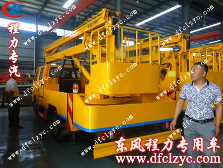 最近湖北程力集團銷售部接到全國各地用戶來電,咨詢高空作業(yè)車,其中最受歡迎的、用戶了解最多的就數(shù)16米高空作業(yè)車。江蘇泰州用戶昨日來到我湖北程力公司,試用了東風小霸王高空作業(yè)車,該車采用的是東風輕型發(fā)動機,國四排放標準,油剎,東風原裝方向助力,可選裝空調,新款駕駛室雙排座,整車工程黃。