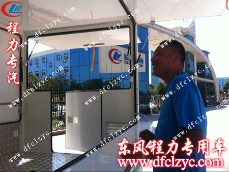 打開了貨車的所有大門,湖北程力的開瑞移動售貨車質(zhì)量經(jīng)得住任何檢驗(yàn)。王先生檢查完后開心的笑了,我公司的銷售人員用相機(jī)捕捉了這精彩的瞬間。
